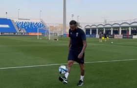 体坛周报全媒体记者小中报道 4月14日,在沙特利雅得新月的队内训练中,内马尔出现在训练场,并颠了几...